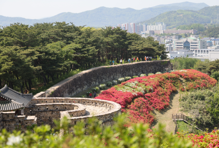 동문지를 배경으로 한 포토존과 성벽을 따라 이어지는 산책로가 사진 명소로 꼽힙니다.