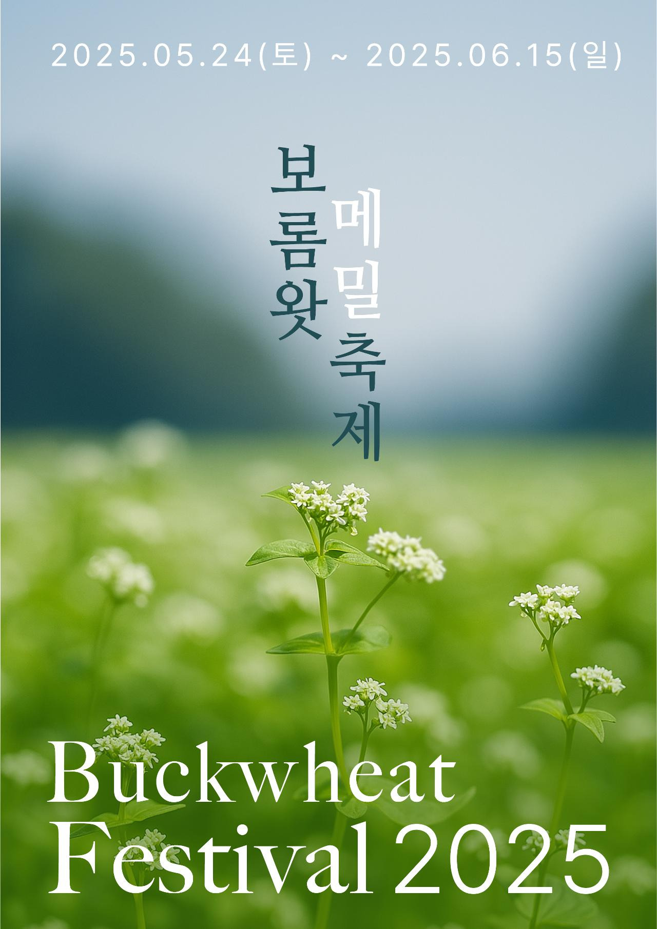 2025 보롬왓 메밀축제는 5월 24일(토)부터 6월 15일(일)까지 진행됩니다. 순백 메밀꽃의 개화 시기는 매년 기상 상황에 따라 다소 차이가 있지만, 5월 말부터 6월 중순까지 가장 만개 시기로 예측됩니다.